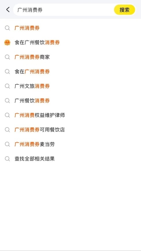 3.在首页搜索栏搜索“广州消费券”或“食在广州”进入活动页面领取消费券