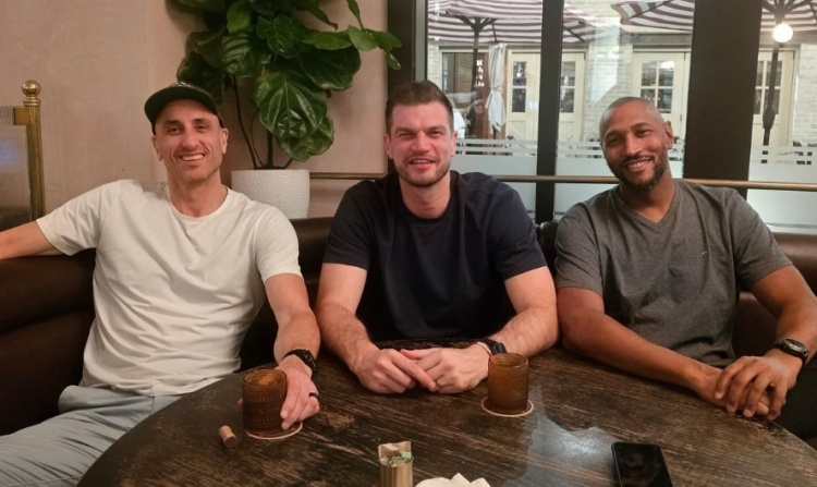 4月9日讯 今天,马刺名宿马努·吉诺比利晒出了自己和前队友斯普利特、迪奥的合照。